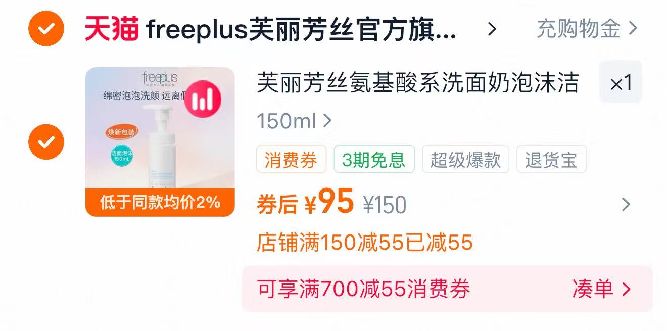 效果: 原价249元,领券50元,只要199啦