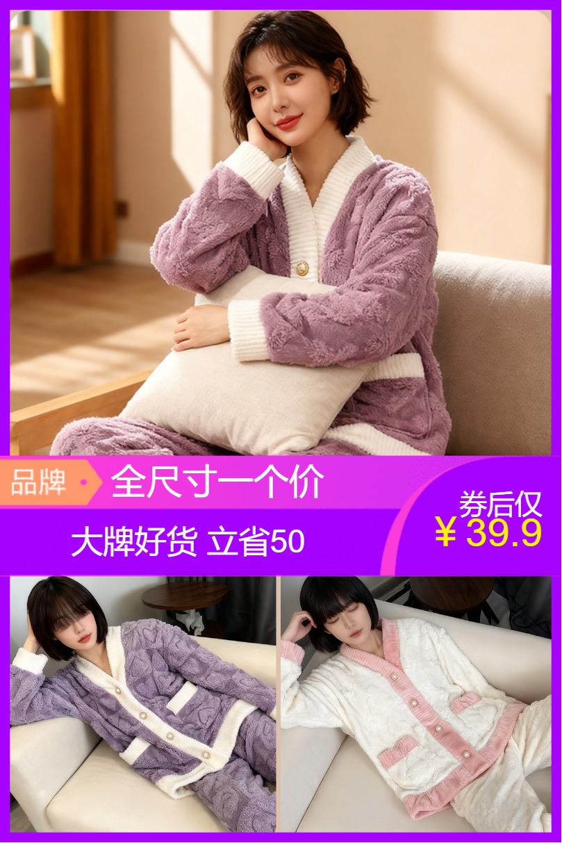 儿童家居服套装雪粒绒男童女宝冬季开衫加绒加厚保暖睡衣ak