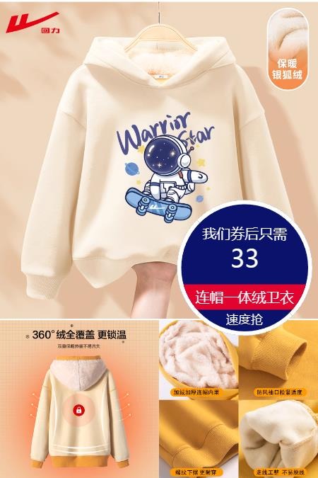 回力儿童卫衣男童女童加厚上衣冬季内搭中大童小学生2025新款冬装